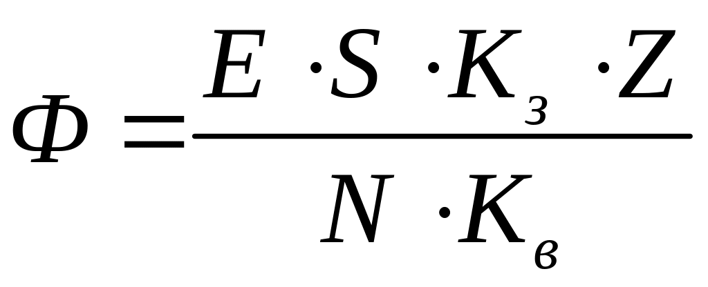 Кз – коефіцієнт запасу, враховує зниження освітленості в процесі експлуатації в результаті зменшення світлового потоку джерела світла в процесі горіння, зниження ккд світильників в результаті забруднення стін і стелі приміщення;
