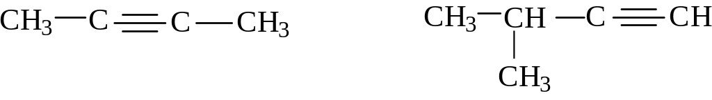 Для алкинов возможна структурная изомерия, обусловленная изомерией углеродного скелета, изомерией положения тройной связи, и межклассовая (алкины и алкадиены). Так как атомы углерода, связанные тройной связью, имеют линейную структуру, то пространственная изомерия для алкинов не характерна. Физические свойства алкинов близки к свойствам алкенов: нерастворимы в воде и хорошо растворяются в органических растворителях.