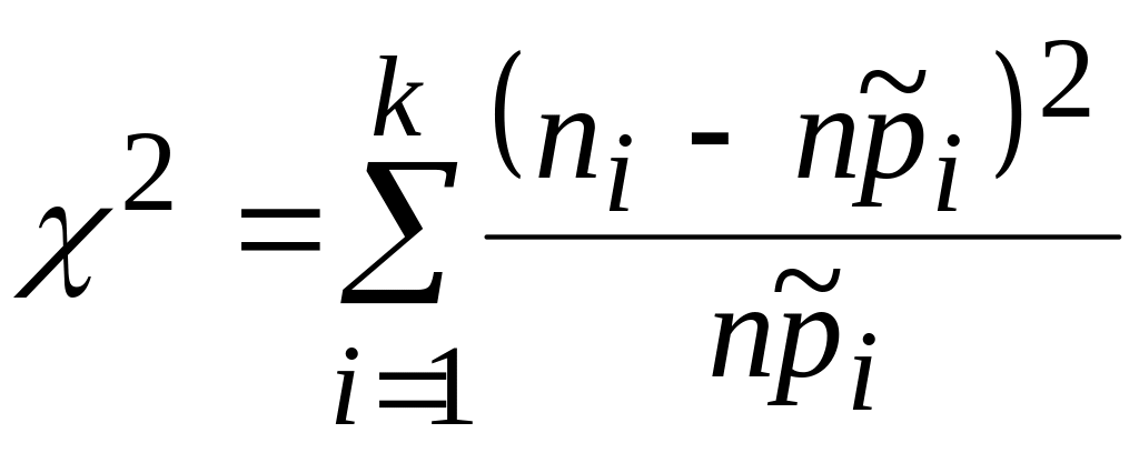 Величина , обчислена за формулою (3.1) , при n®¥ має розподіл " – квадрат" із l=k-r-1 ступенями свободи, де r – число невідомих параметрів теоретичного розподілу , визначених за вибіркою. Причому, для нормального розподілу r=2, для показового – r=1 , а для рівномірного – r=2.