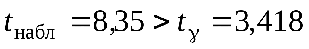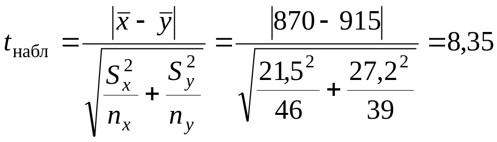 Вычисление наблюдаемого значения критерия Стьюдента tнабл проведем по формуле: