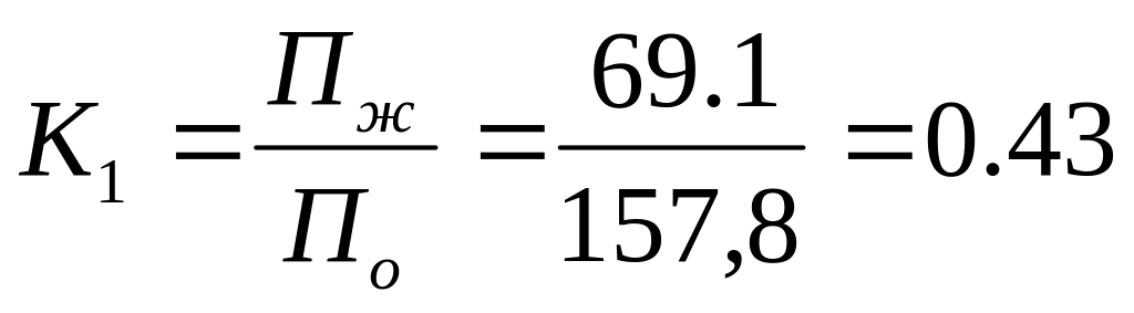 Вычислим показатель целесообразности соотношения жилой и приведенной общей площади по дому в целом