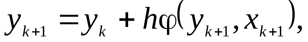 Формула (5.86) є загальною формулою однокрокових неявних чисельних методів інтегрування диференційних рівнянь.