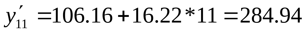 По минимальной среднеабсолютной процентной ошибке (MAPE) определяем наиболее подходящую зависимость – это линейная зависимость. Уравнение для прогноза тонно-километража на 11 год выглядит следующим образом: