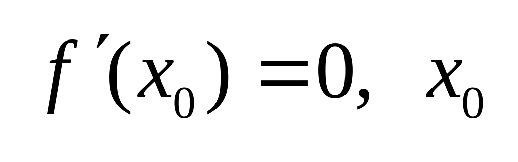 Согласно теореме точки экстремума могут быть лишь в тех внутренних точках, где производная не существует или равна нулю. Такие точки называются подозрительными на экстремум. Точки в которых производная равна нулю называются стационарными.