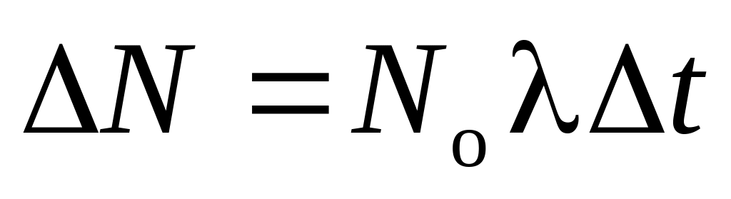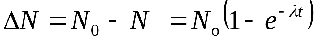 где dN — число ядер, распадающихся за интервал времени dt, N — число ядер, не распавшихся к моменту времени t; No — число ядер в начальный момент (to=0); — постоянная радиоактивного распада.