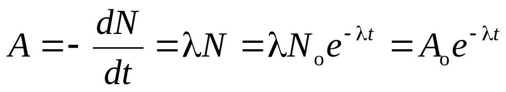 где dN — число ядер, распадающихся за интервал времени dt; Ao — активность изотопа в начальный момент времени.