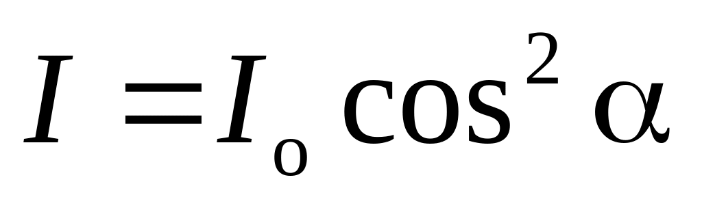 где Iо — интенсивность плоскополяризованного света, падающего на анализатор; I — интенсивность этого света после анализатора; — угол между направлением колебаний электрического вектора света, падающего на анализатор, и плоскостью пропускания анализатора (если колебания электрического вектора падающего света совпадают с этой плоскостью, то анализатор пропускает данный свет без ослабления).