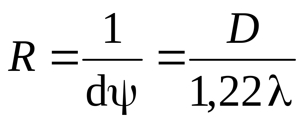 где d — наименьшее угловое расстояние между двумя точками, при котором они еще разрешаются оптическим прибором, D- диаметр объектива, - длина волны света.