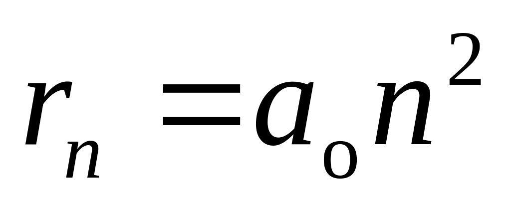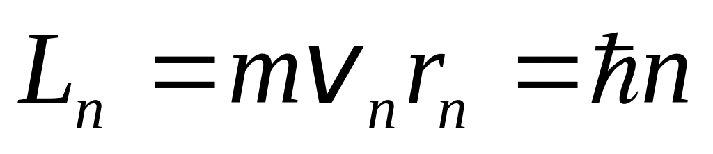 где m — масса электрона; vn — скорость электрона на n-й орбите; rn — радиус n-й стационарной орбиты; ћ=h/2 — постоянная Планка; п — главное квантовое число (n= 1, 2,3,...).