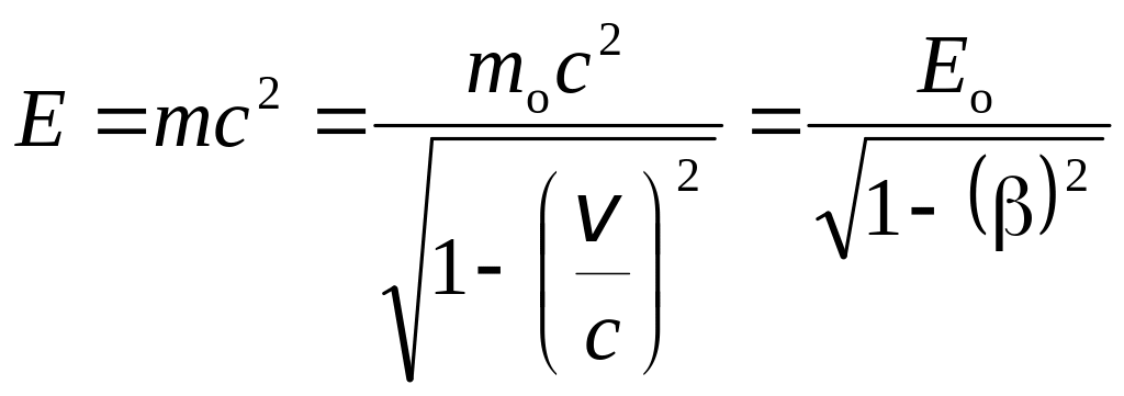 где то — масса покоя частицы; т — релятивистская масса; v — скорость частицы; с — скорость света в вакууме; Еo — энергия покоя частицы (Еo = тоc2)