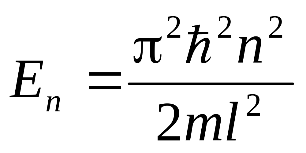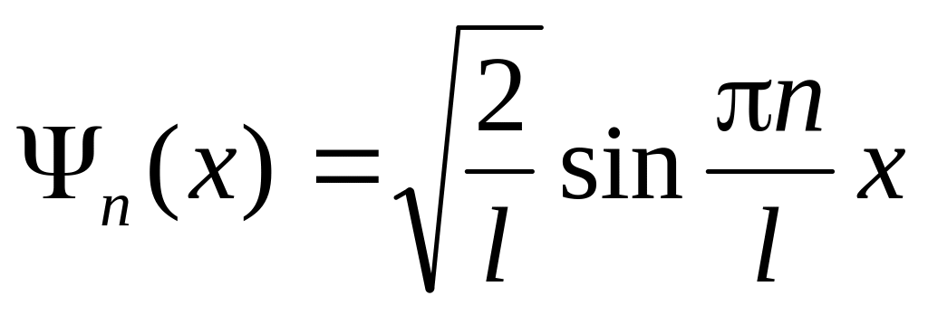 где п—квантовое число (п= 1, 2, 3, ...); l—ширина ящика. В области 0 <x< l U= и (х)=0.