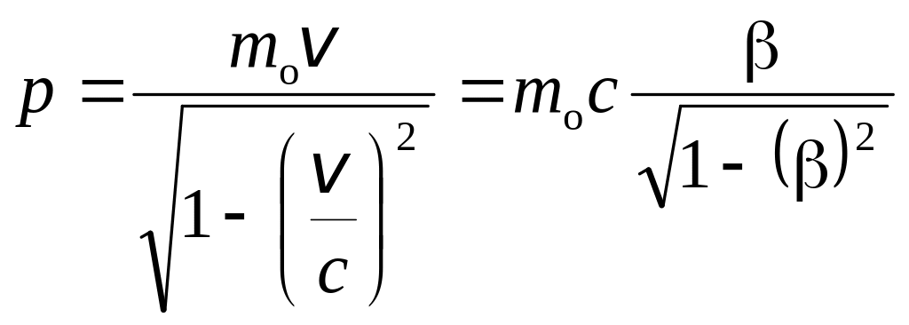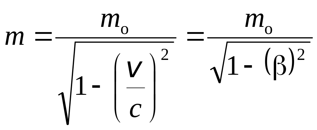 где mo — масса покоя частицы; v — ее скорость; с —-скорость света в вакууме; — скорость частицы, выраженная в долях скорости света (= v/с).