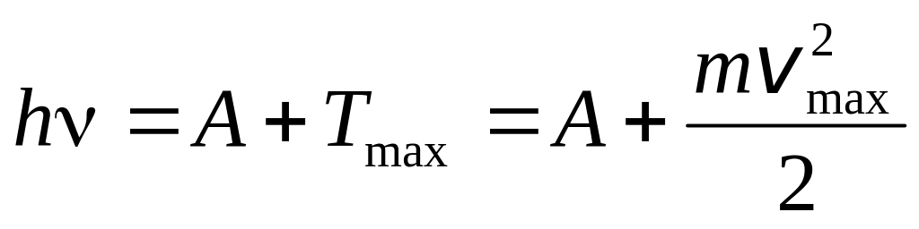 где h — энергия фотона, падающего на поверхность металла; А — работа выхода электрона; Tmax— максимальная кинетическая энергия фотоэлектрона.