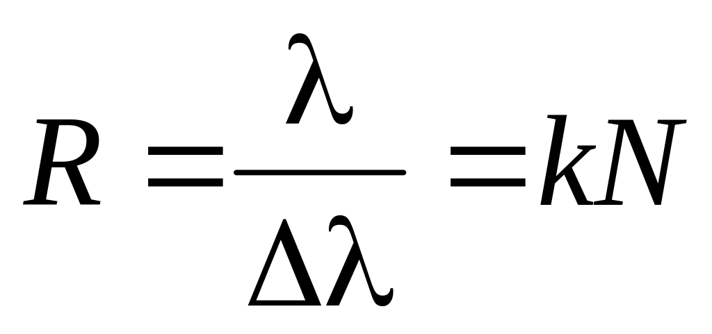 где — наименьшая разность длин волн двух соседних спектральных линий ( и +,), при которой эти линии могут быть видны раздельно в спектре, полученном посредством данной решетки; N — полное число щелей решетки.