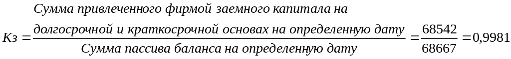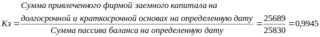 Анализ показателей финансовой устойчивости ЗАО «Предприятие» за 2011 г. свидетельствует, что за отчетный период коэффициент автономии уменьшился на 0,0037 пункта (на начало года – 0,0055, на конец года – 0,0018) коэффициент финансирования увеличился на 366,14 пункта (соответственно 182,19 и 548,33), коэффициент задолженности вырос на 0,0036 пункта и на конец года составил 0,9981, тогда как в начале года – 0,9945, коэффициент текущей задолженности вырос на 0,0036 пункта (на начало года – 0,9945, на конец года – 0,9981).