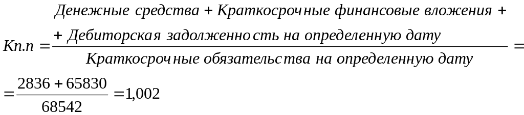 Анализ показателей платежеспособности ЗАО «Предприятие» за 2011 г. свидетельствует, что за отчетный период вырос только показатель абсолютной ликвидности, рост его составил 0,005 пунктов, т.к. на начало года значение составляло 0,036, на конец года – 0,041.