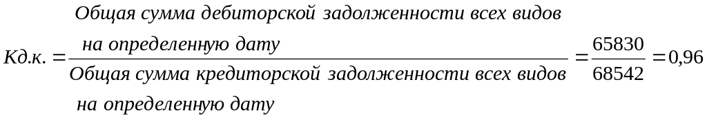 Общий коэффициент соотношения дебиторской и кредиторской задолженности (Кд.к.):