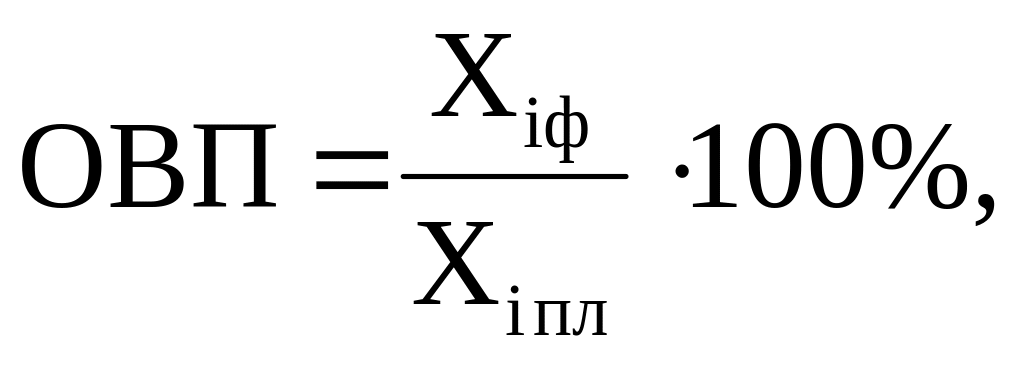 Относительная величина выполнения плана (ОВП) выражает степень выполнения плановых заданий за определенный период времени. Например, выполнение плана по прибыли предприятия