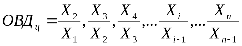 Цепные относительные величины динамики (ОВДц) отражают развитие явления от периода к периоду и могут быть выражены в виде следующих отношений: