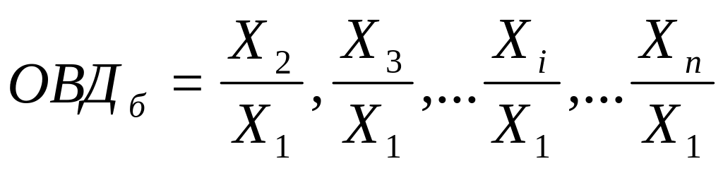 Если в ряду динамики за базу сравнения принять первый член ряда, то полученные базисные относительные величины динамики (ОВДб) могут быть выражены в виде следующих отношений: