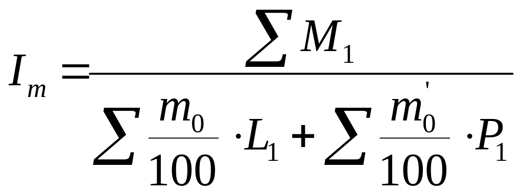 Если на производство продукции (выполнение ремонта) расходуется не один, а несколько видов материалов, то для оценки рациональности их расходования рассчитывается индекс удельного расхода по формуле