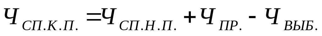В балансе списочная численность на конец периода может быть рассчитана по формуле: