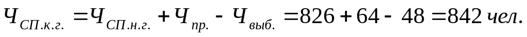 Баланс движения персонала можно представить в виде таблицы. Составными элементами баланса являются: списочная численность на начало года, принято работников в течение года, выбыло работников в течение года, списочная численность на конец года.