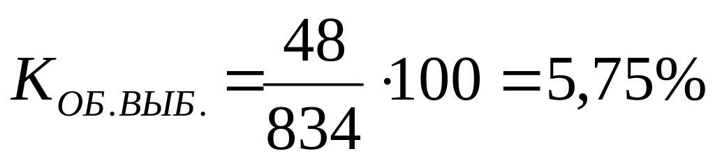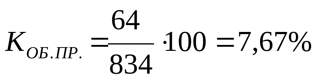 Таким образом, процент не явившихся на предприятие рабочих составляет 3,14% (100 – 96,86); в целодневном простое находилось 0,47% рабочих от числа явившихся на работу (100 – 99,53).