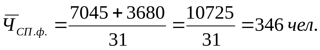 Задача 12.7. По данным первичного ежедневного учета списочная численность за апрель составила с 1 по 10 апреля – 42 чел., с 11 по 20 апреля – 40 чел., с 21 по 30 апреля – 45 чел. В апреле выходные дни – 1,7,8,14,15,21,22,28,29. Определить среднюю списочную и среднюю явочную численность рабочих (все состоявшие в списке явились на работу).