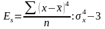 Эксцесс нормального распределения = 3. В случае, если распределение имеет пологую вершину, эксцесс отрицательный. При острой вершине эксцесс положительный.