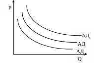 Під дією нецінових факторів крива сукупного попиту АД (рис. 3.2) переміщується праворуч вгору, якщо попит збільшується (АД → АД1); ліворуч вниз, якщо попит зменшується (крива АД 2);