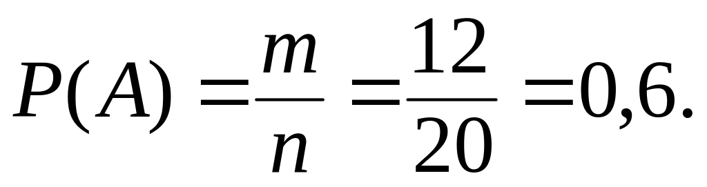 Определение: Вероятностью события А называется отношение количества благоприятствующих событию А элементарных исходов к общему числу равновозможных элементарных исходов: