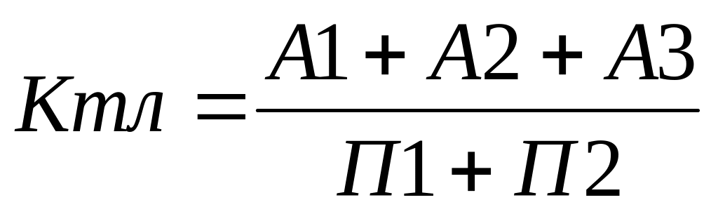 А1, А2, А3, П1, П2 – суммы групп активов и обязательств по пассиву |