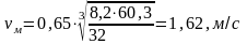 Коэффициент n при f < 100 определяется в зависимости от vм по формуле