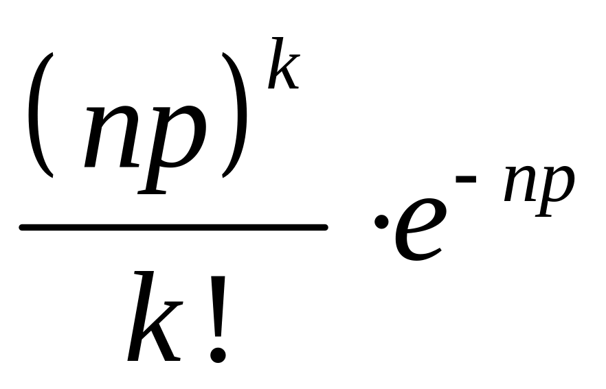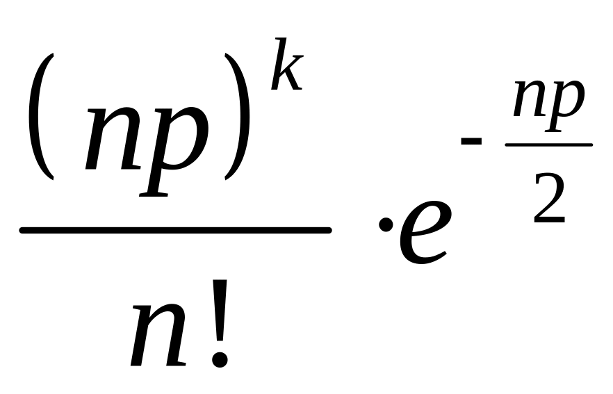 10.2.39. При великій кількості випробувань за схемою Бернуллі та малоймовірному успіху в кожному випробуванні ймовірність того, що успіх наступить раз, може бути наближено обчислена за формулою ( – кількість випробувань, – ймовірність успіху в кожному з них):