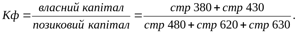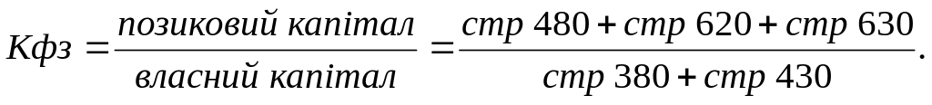 Коефіцієнт фінансової залежності характеризує залежність підприємства від зовнішніх позик. Розраховується за формулою