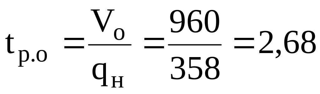 Гидравлические условия работы отстойников обычно оцениваются коэффициентом объемного использования отстойника Kо.и, представляющим собой отношение действительного времени пребывания воды в сооружении tн к теоретическому t: