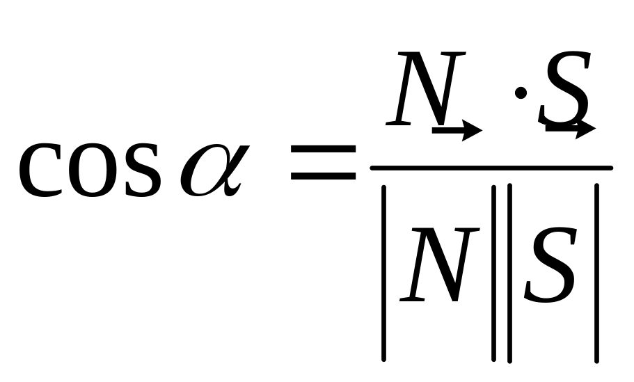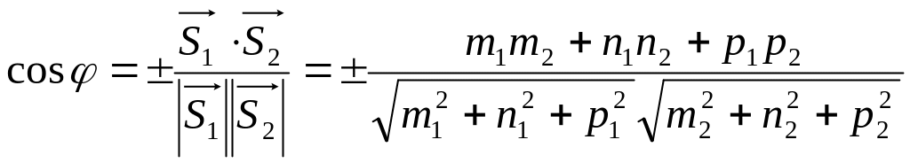 Угол между прямыми и угол между направляющими векторами этих прямых связаны соотношением: = 1 или = 1800 - 1. Угол между направляющими векторами находится из скалярного произведения. Таким образом: