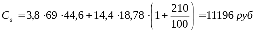 Н – процент накладных расходов (для ремонтных предприятий 210…250%) (таблица 1.4 [1]), принимаем H = 210.