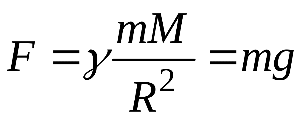Ускорение, которое сообщает телу сила притяжения к Земле, называется ускорением свободного падения g. Согласно закону всемирного тяготения сила, с которой материальная точка с массой m притягивается к Земле, равна: