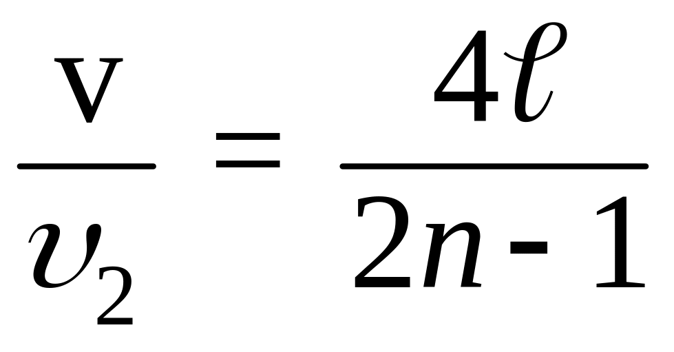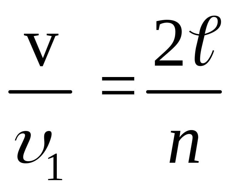 Формула (1) выражает связь скорости распространения волны и резонансной частоты колебания струны (при l = const, n = const). Она дает возможность вычислить скорость распространения волны по измеренной частоте колебаний на каждый гармонике (n = 1, 2, 3 и т.д.). Соотношение между скоростью и частотой имеет следующий вид: