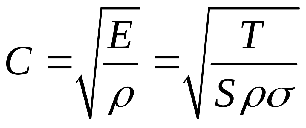 Известно, что скорость звука С в твердом теле, в том числе и в струне, определяется по аналогичной формуле, в которую, кроме плотности материала, входит модуль Юнга: