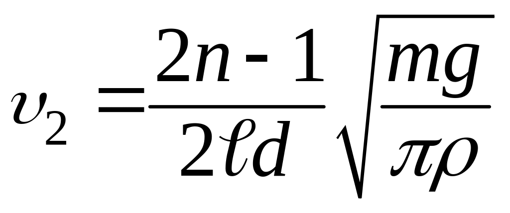 2. При постоянных ρ, m, d и l частота колебаний 1 пропорциональна n, а частота 2 пропорциональна 2n – 1.