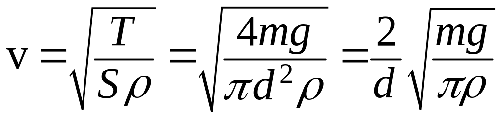 , т.е. скорость остается неизменной, если массу груза увеличить в 4 раза, а диаметр струны – в 2 раза;