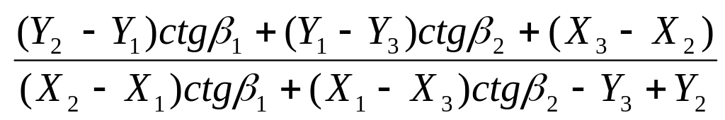 2.6.5 Обчислення координат пункту Р з оберненої багаторазової засічки .