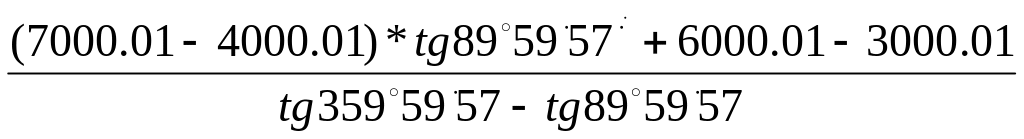Yp1=3000,01+(3999,97-7000,01)*tg 359°59'57"=3000,05м
