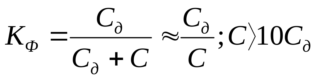 Однією з важливих вимог до детектора є забезпечення найменшої величини напруги високої частоти на його виході. Ця вимога виконується за рахунок ємкісного дільника, що складається з ємкості діода Сд і ємкості С. Коеффіциент фільтрації КФ визначається відношенням ємкостей Сд і С