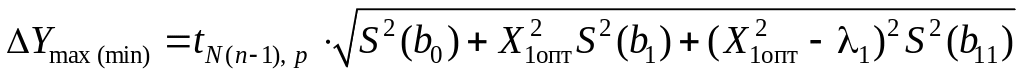 Максимум (минимум) параметра Y(Х1 опт) рассчитывается по формуле: