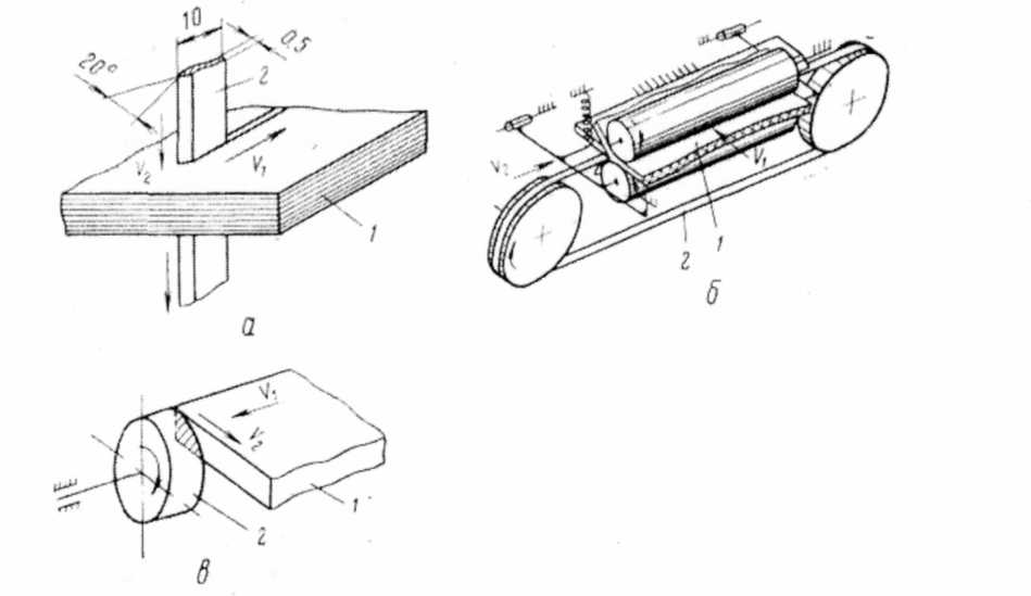 Рис. II 1.29. Схемы резания материала (1) подвижным ножом (2):
