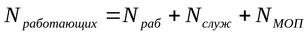 Nобщ рбт, сут.= Nmax с.с.сут. + NИТР + NМСП + Nсл |